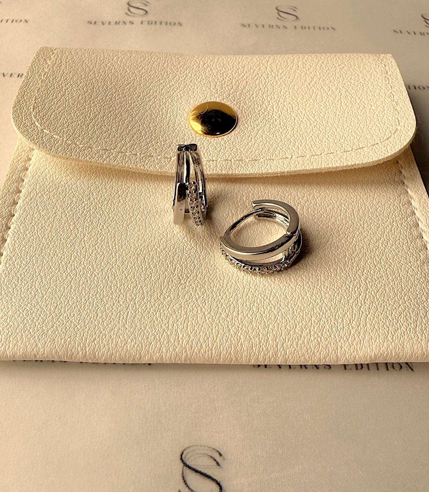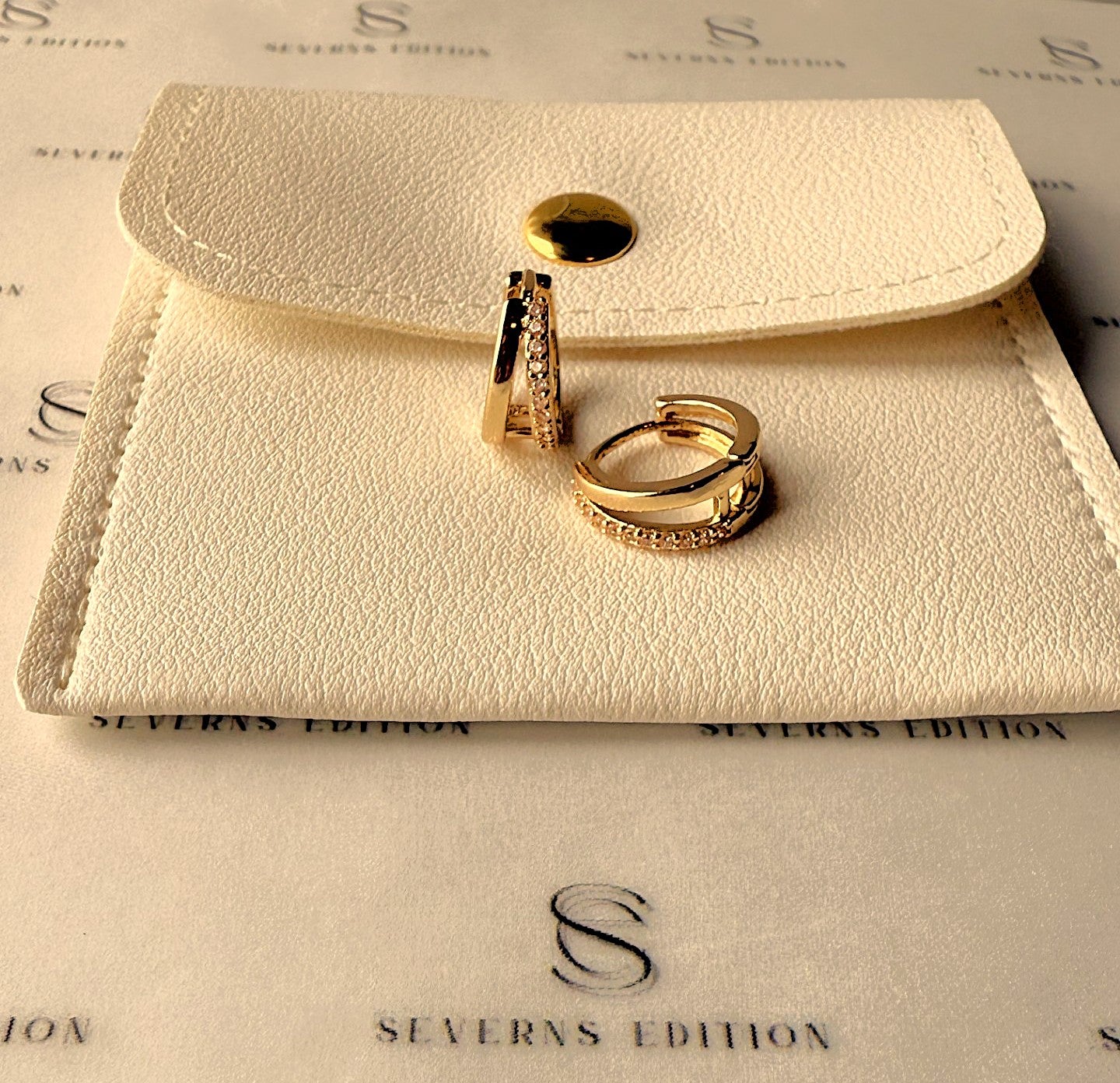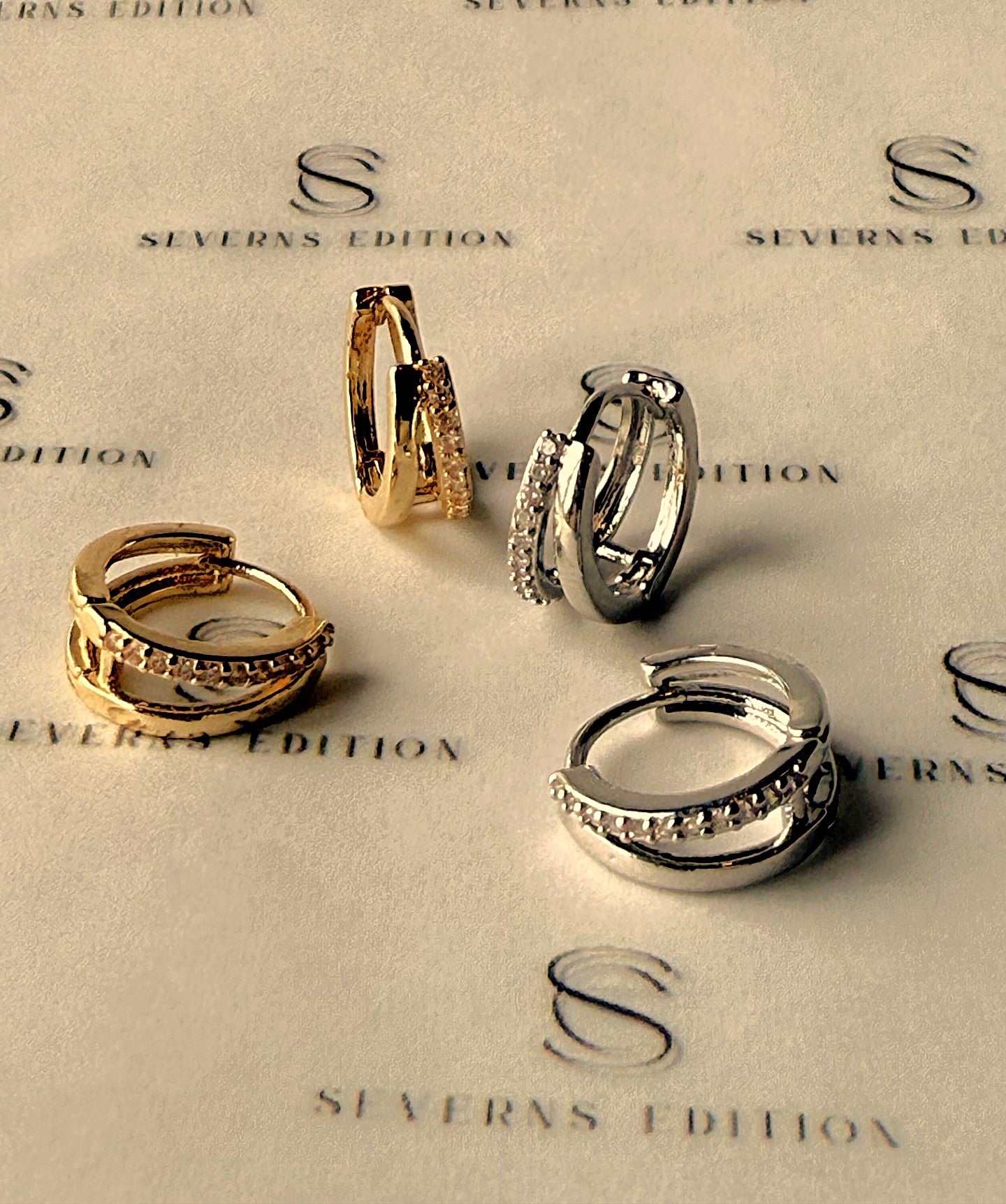 Add a touch of sparkle to your day with our Erin Earrings. Delightful double band huggies where one side dazzles with shimmering zircon stones. These playful earrings hug your ears with effortless charm, making every glance your way a little brighter. Perfect for those who love subtle sparkle mixed with a fun twist!