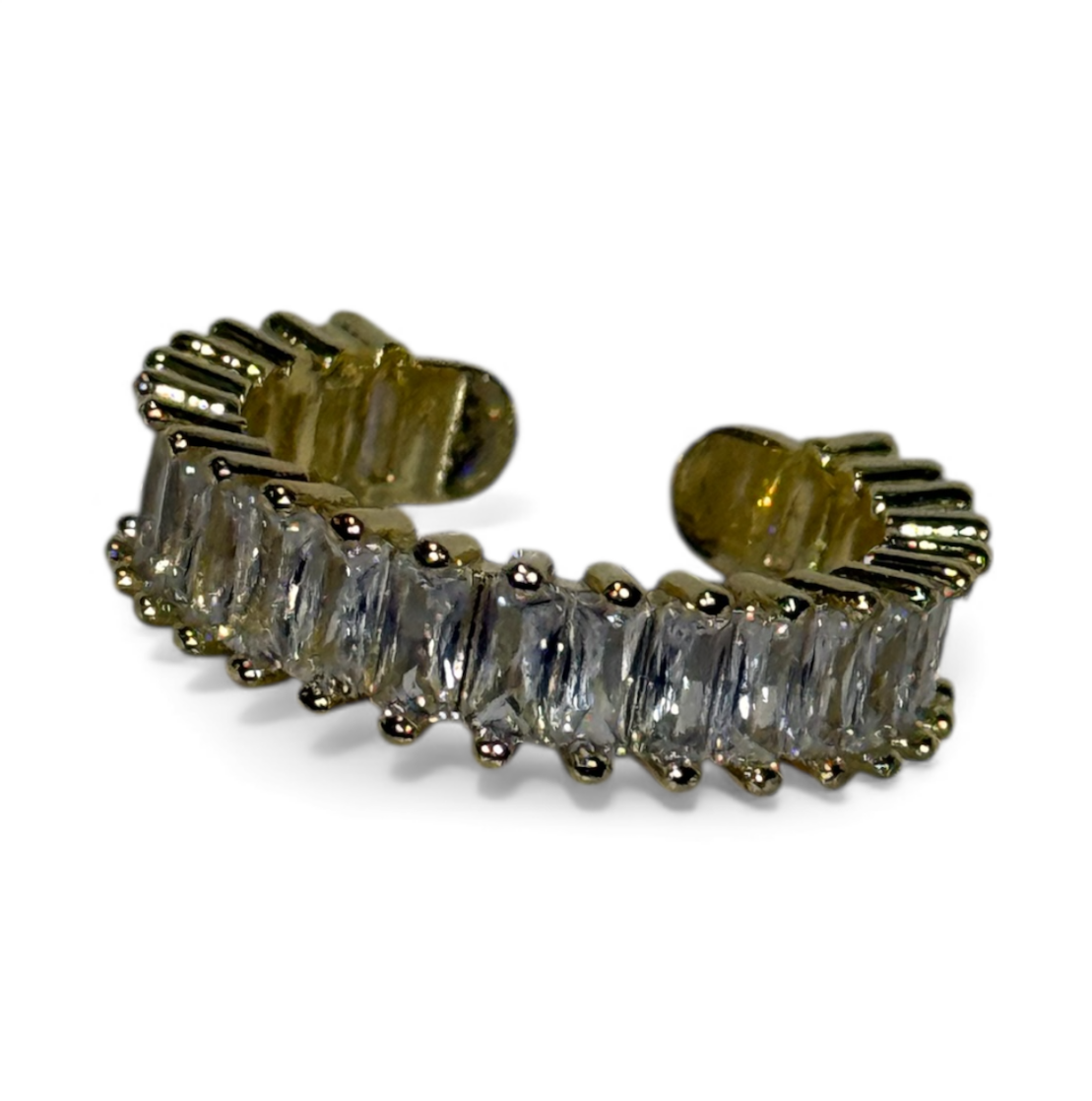 This adjustable beauty features dazzling cubic zirconia inserts that catch the light from every angle, giving you that luxe gemstone look without the hefty price tag. Whether you're channelling golden glamour or sleek silver sophistication, this ring adapts to your mood and your finger. Perfect for stacking, layering, or making a solo statement, our Lorna is your go-to accessory for adding instant pizzazz to any outfit. Adjustable sizing means one ring fits all – no fuss, just fabulous sparkle.