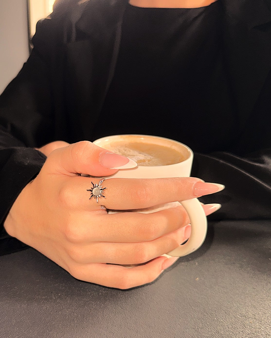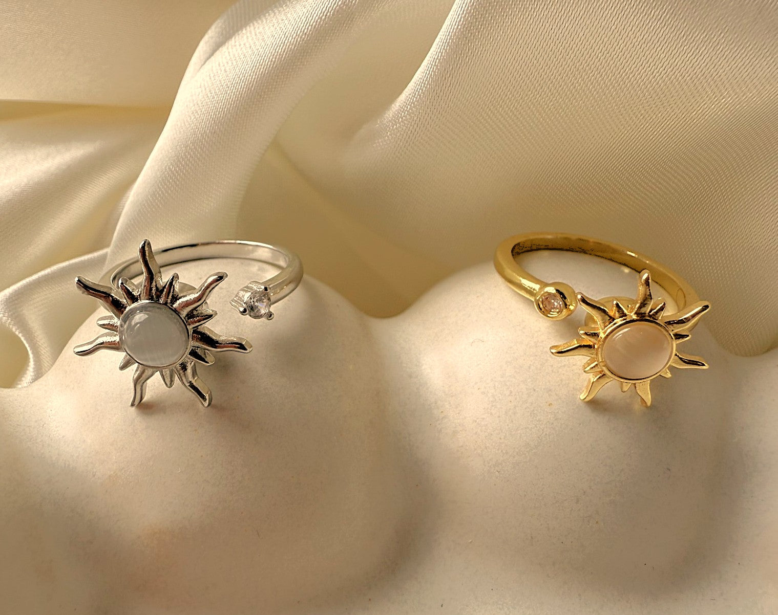 Our Sun Ring features a spinning sun design. Offering both elegance and a tactile way to ease anxiety. Crafted to provide a subtle fidget experience, its smooth spinning motion helps promote calm and focus. Ideal for those seeking a stylish yet functional accessory to support emotional well-being.